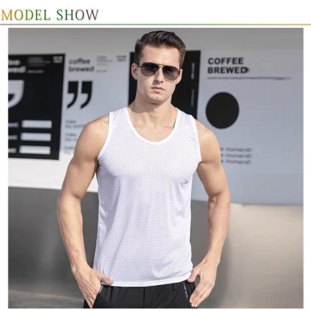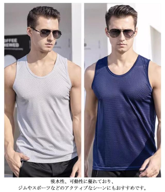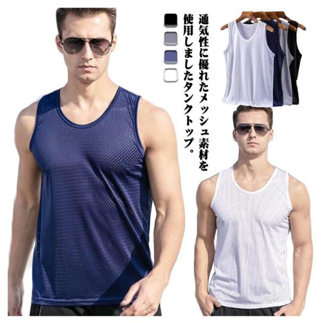 タンク 吸汗 ストレッチ 筋トレ メッシュ スポーツ タンクトップ Uネック 速乾 薄手 トレニンーグ タンクトップ メンズ タンクトップ フィット 接触冷感 下着 肌着 大きいサイズ L XL 2XL メッシュ 黒 白 グレー シンプル