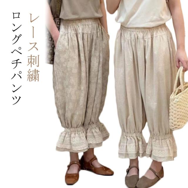 パンツ ペチパンツ ズボン ロング ワイドパンツ インナー ペチコート レース ゴム ワイド ひざ下丈 ボトムス 浴衣 和装 裾ゴム ずぼん ペチパンツ ベージュ 下着 春 夏 無地