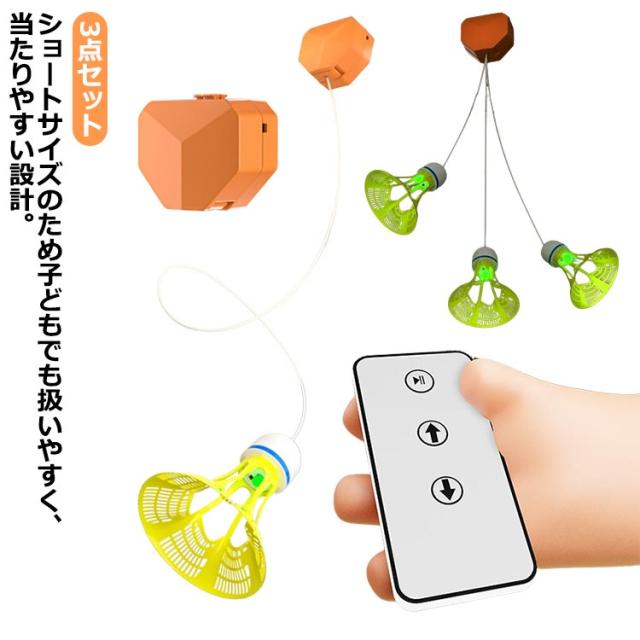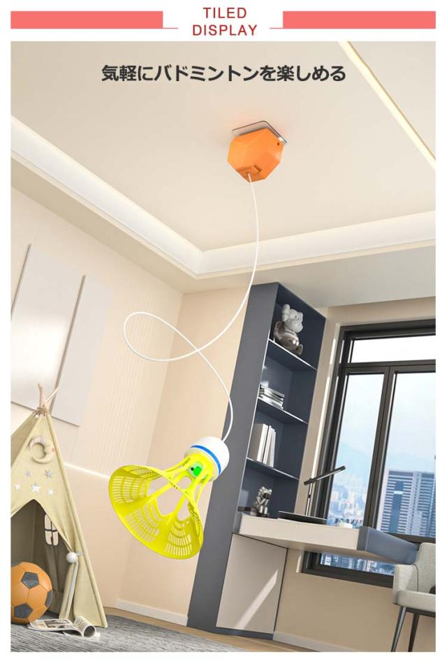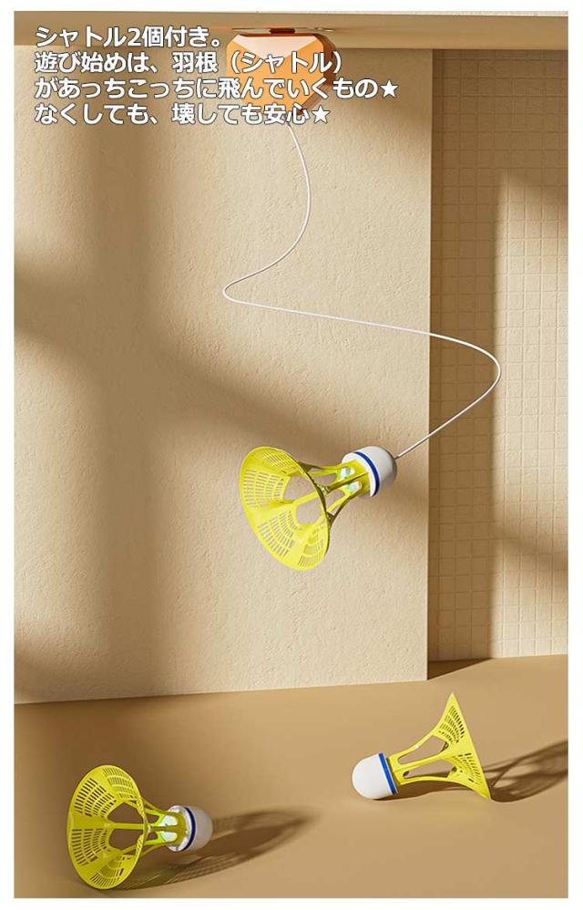 | ショートサイズのため子どもでも扱いやすく、当たりやすい設計。 リモコンで調節可能なコードの長さを備えたリバウンドトレーナーでトレーニングを強化する。 気軽にバドミントンを楽しめる。 シャトル2個付き。遊び始めは、羽根(シャトル)があっちこっちに飛んでいくもの★なくしても、壊しても安心★ 屋内と屋外の両方の使用に適しており、いつでもどこでも練習することができる。 | |