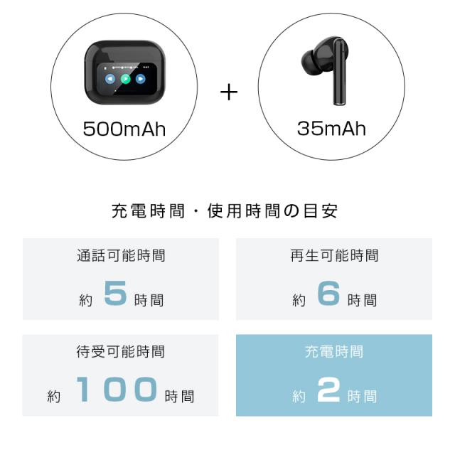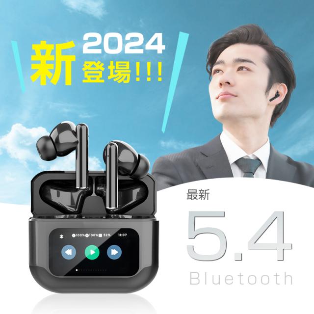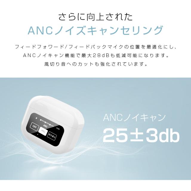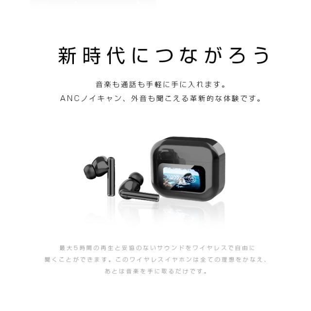 完全ワイヤレスイヤホン Bluetooth5.4 液晶搭載ケース カナル型 ENC ノイズリダクション ANC ノイズキャンセリング マイク内蔵 クリア 【PL保険加入済み製品・安心】
