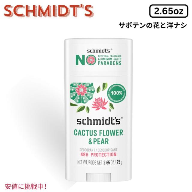 Schmidt’s シュミッツ Aluminum-Free Vegan Deodorant 75g アルミニウムフリー ヴィーガン デオドラント サボテンの花&洋ナシ 2.65 oz
