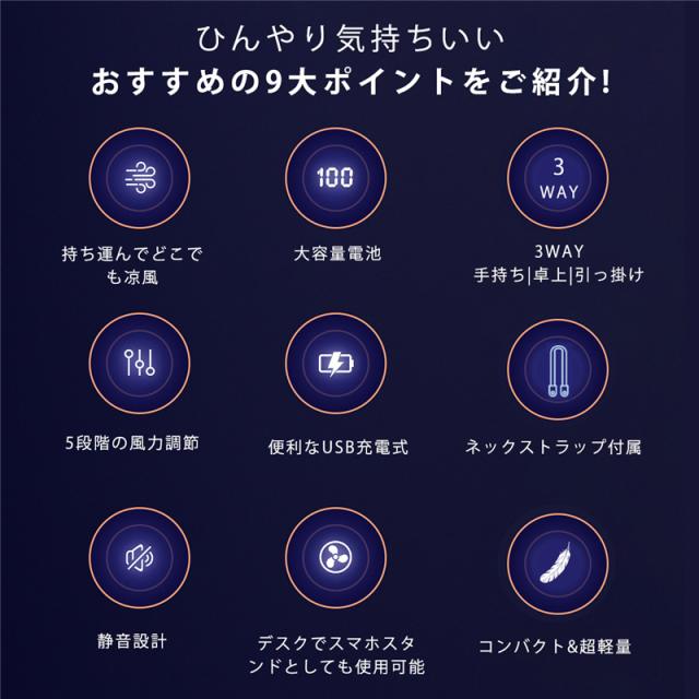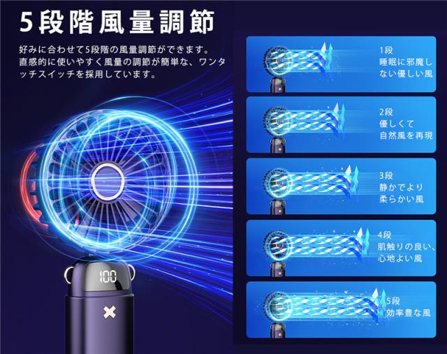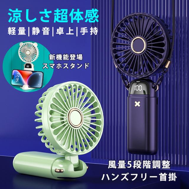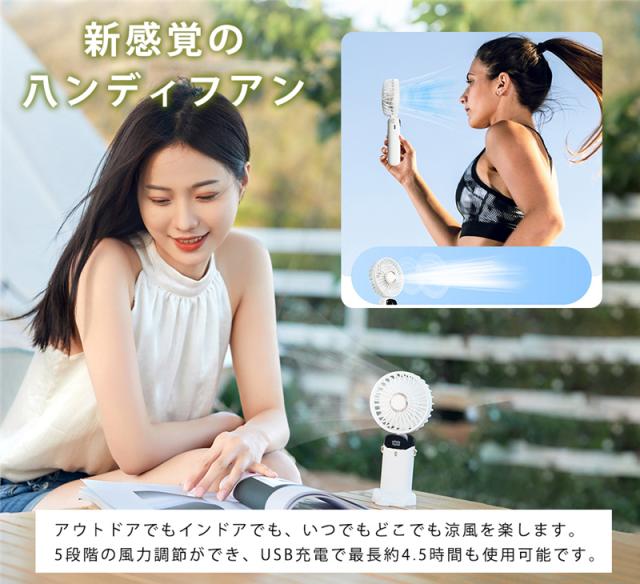 扇風機 ハンディ扇風機 ハンディファン 卓上扇風機 携帯扇風機 手持ち 卓上 首掛け 5段階風量調節 暑さ対策 急速充電 静音 大