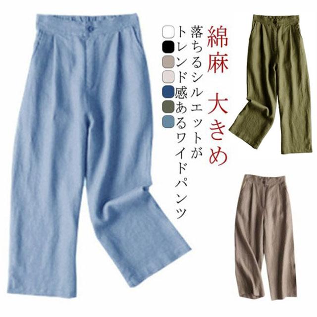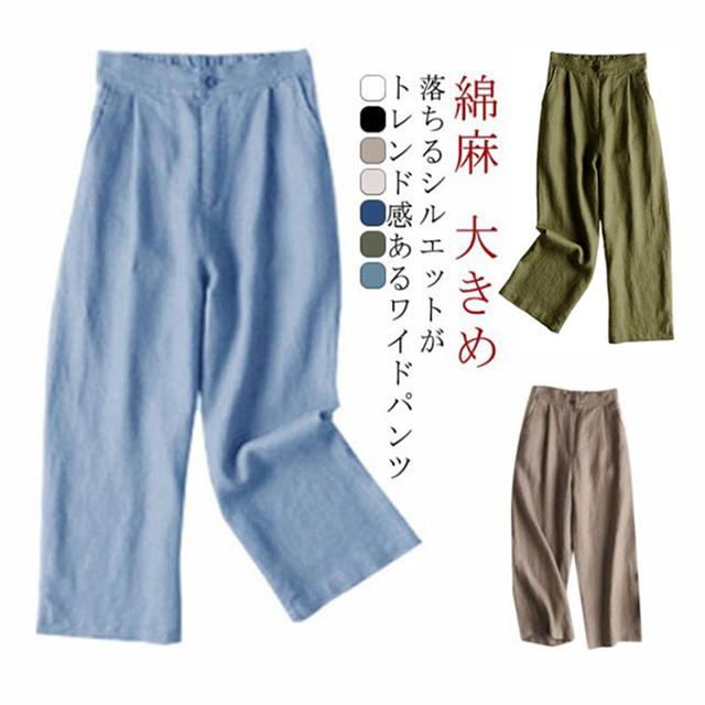リネンパンツ リネンガウチョパンツ ワイドパンツ リネン 麻 パン 綿麻 パンツ ナチュラル 薄手 夏服 大人 大きめ 無地 りねん 美脚 体型カバー ゆったり ロングパンツ ウエストゴム 大きいサイズ 送料無料 春夏物 春服 秋服 大人 お洒落 おしゃれ 通勤 女性