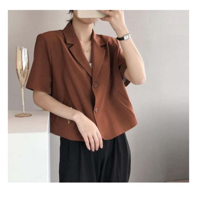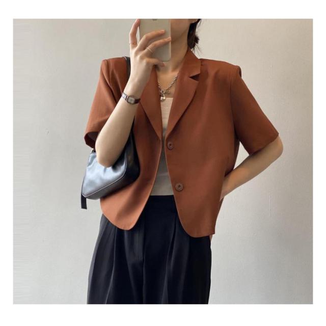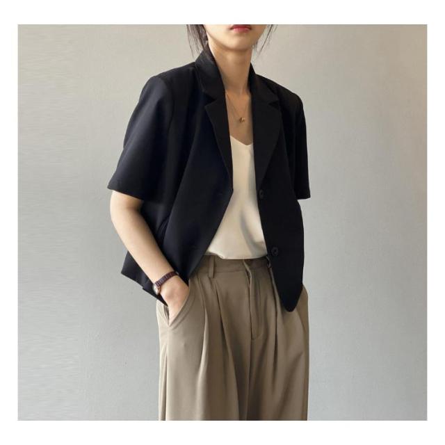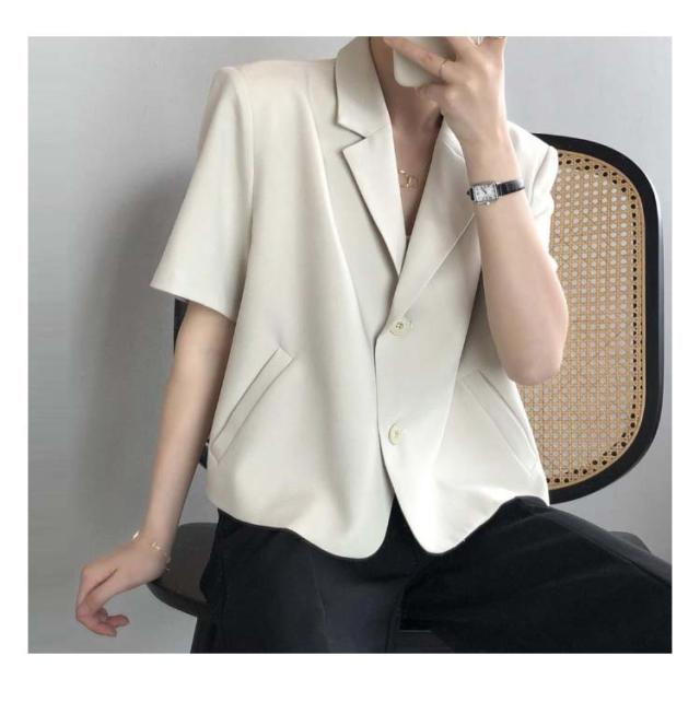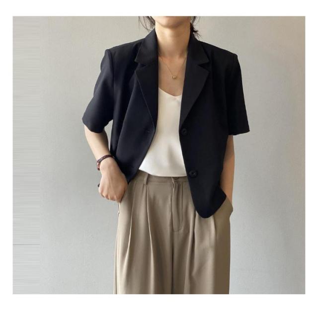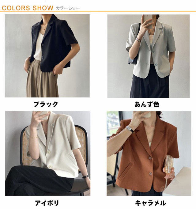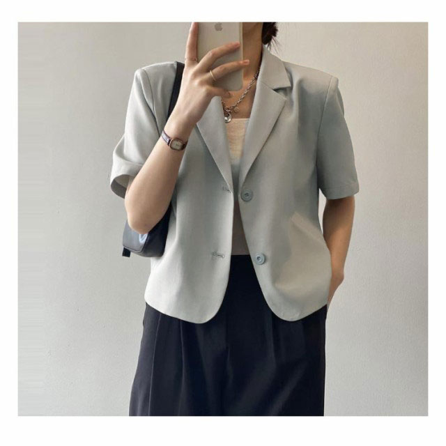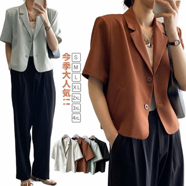 テーラードジャケット 半袖 レディース 夏 ジャケット テーラード サマージャケット スーツジャケット ショート丈 サマースーツ レディース テーラード クロップド アウター 薄手 羽織 普段着 オフィス カジュアル キレイめ 大人 オシャレ 韓国 韓国ファッション