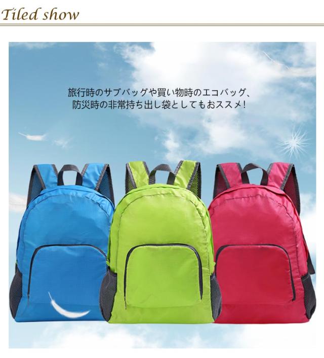 送料無料 折りたたみ リュック バックパック リュックサック 折り畳みリュック ナップサック トラベル バッグ コンパクト 超軽量 かばん 旅行 鞄 携帯 エコバッグ サブバッグ アウトドア 旅行 キャンプ 散歩 防災 登山 通勤 通学