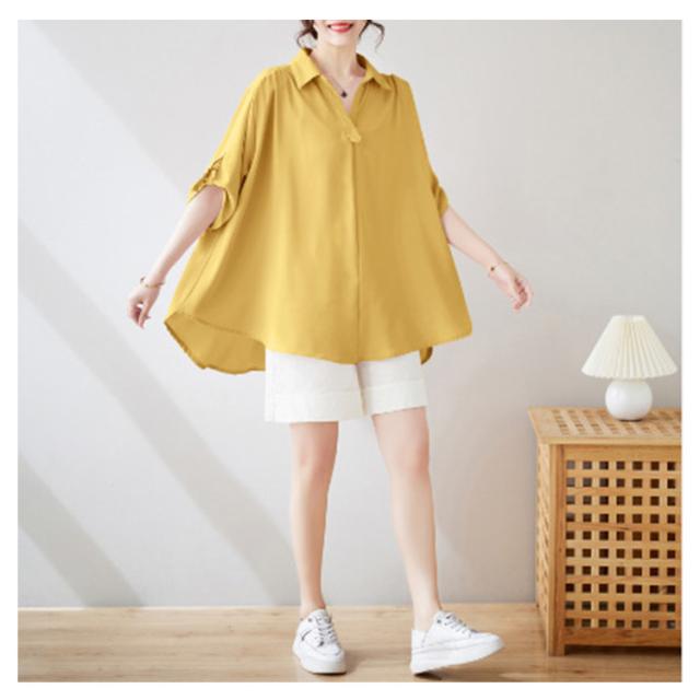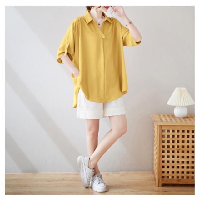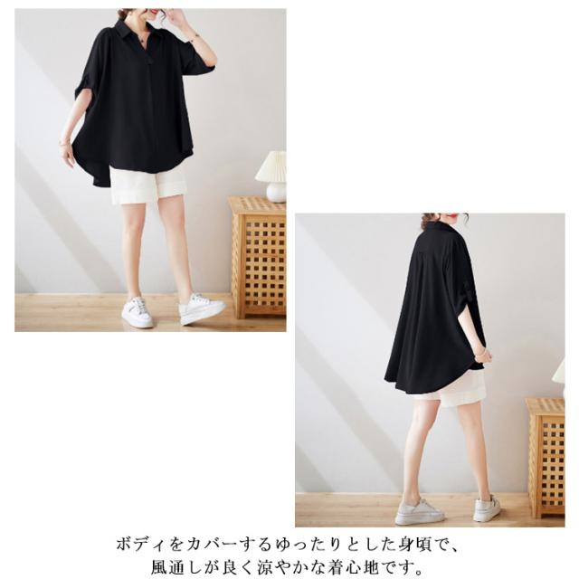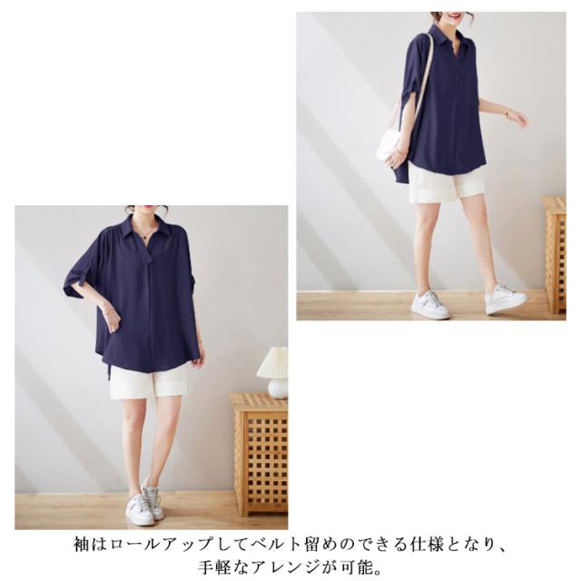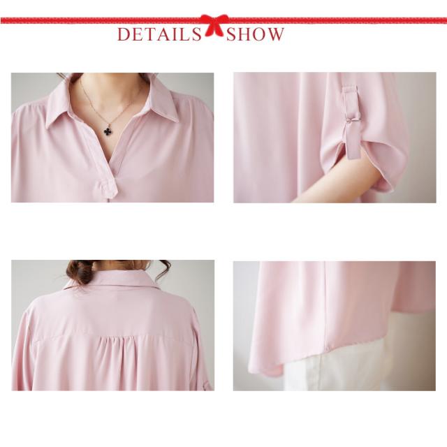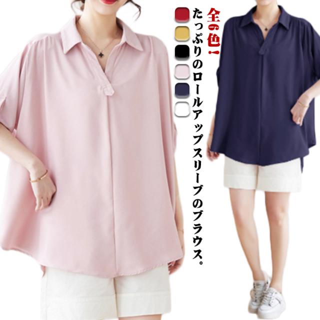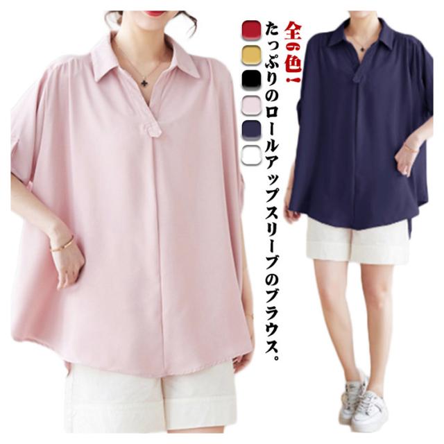 スキッパーシャツ レディース ロールアップ ブラウス チュニック トップス レディース スキッパー プルオーバー シャツ 大きサイズ ゆったり 体型カバー とろみ 涼しい 母の日 ギフト 春 夏