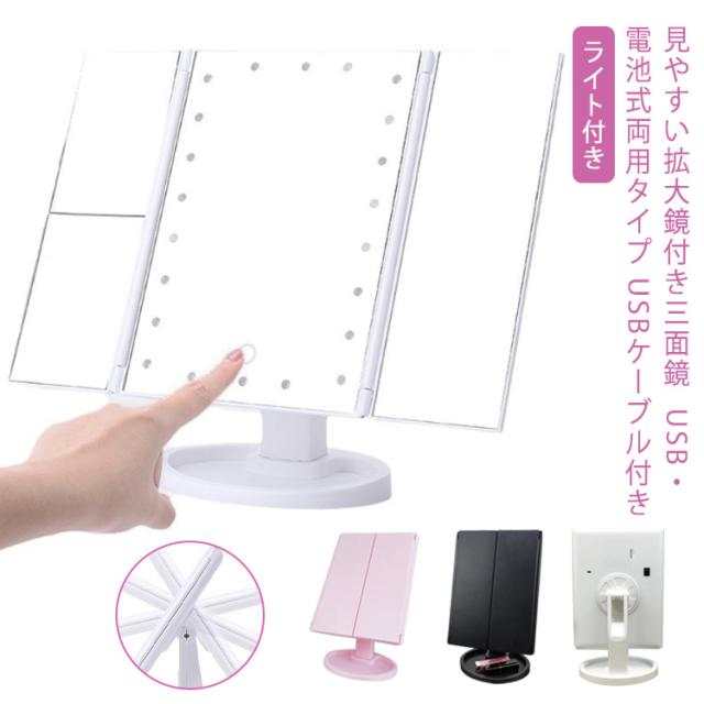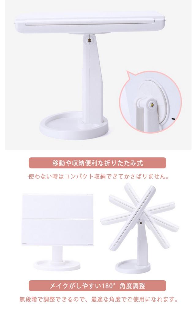 女優ミラー LED女優ミラー ライト付き 折り畳み 電池式 USB 両用 大 鏡 卓上ミラー 化粧鏡 自立 スタンドミラー 22ライト 女優ライト ドレッサー 卓上 2倍 3倍 ミラー メイクアップミラー メイク用 化粧台ミラー 美容室 自宅 おしゃれ 白 ホワイト 黒 ブラック ピンク