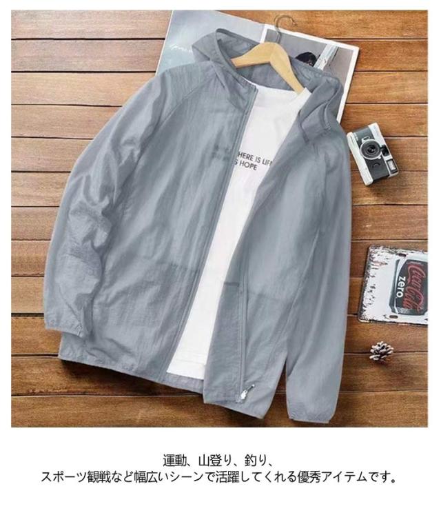 UVカット ラッシュパーカー メンズ 接触冷感 速乾 フルジップ トップス アウター ジャケット 薄手 フード付き 長袖 涼しい ひんやり ラッシュガード 冷房対策 通気性 夏用 アウトドア ライトアウター 送料無料