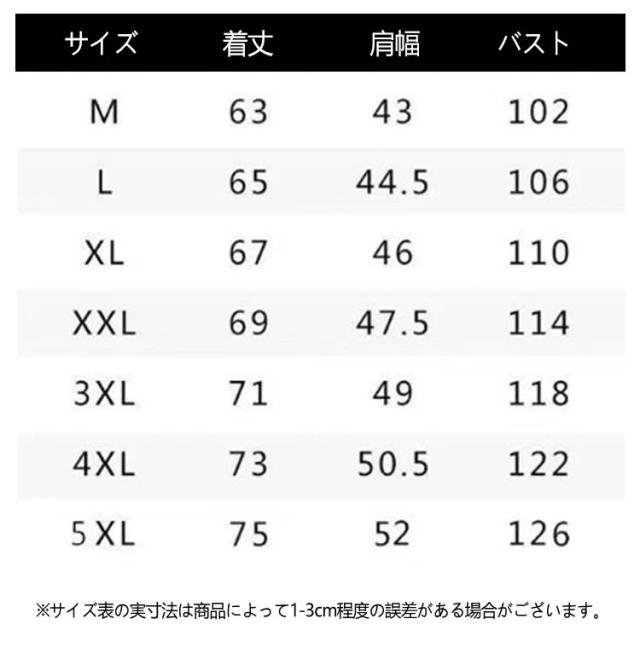 | サイズについての説明 | サイズ 着丈 肩幅 バスト ※サイズ表の実寸法は商品によって1-3cm程度の誤差がある場合がございます。 |