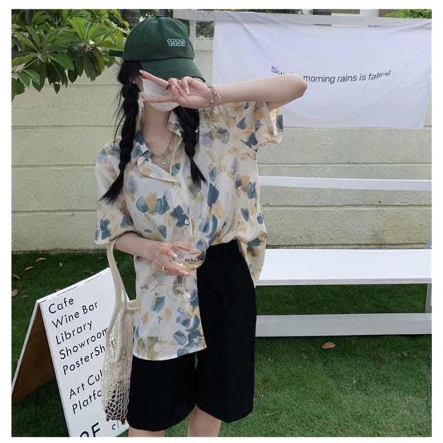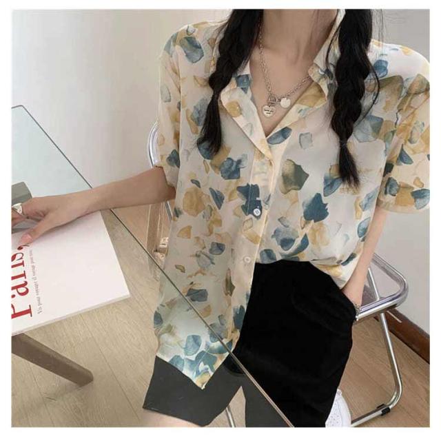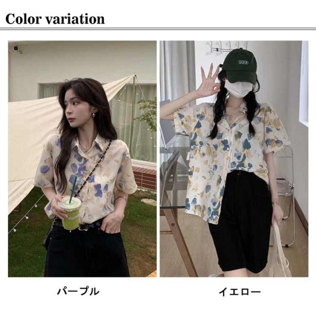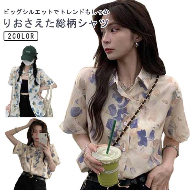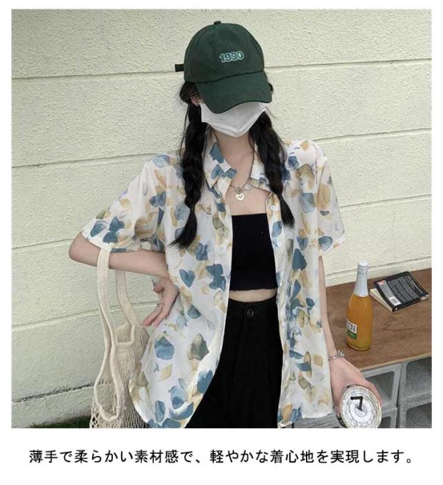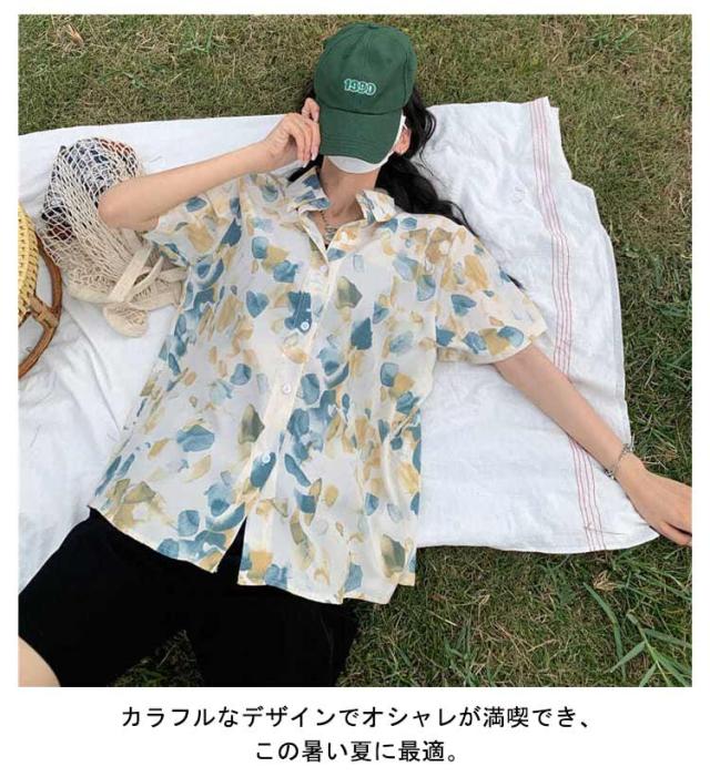 シフォンシャツ 半袖 アロハシャツ レディース 総柄シャツ 薄手 カジュアルシャツ 開襟シャツ ひんやり 涼しげ ハワイシャツ トップス 海 リゾート 旅行 修学旅行 おしゃれ 大人可愛い 大きいサイズ ゆったり 体型カバー 羽織 送料無料