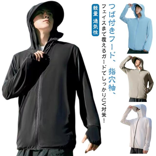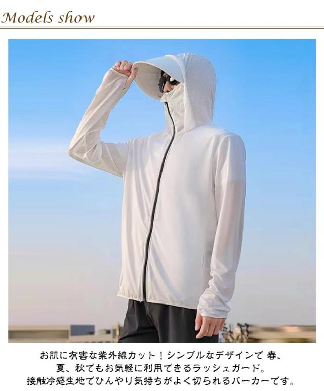 UVパーカー メンズ UVカット パーカー 接触冷感 UPF50+ ラッシュガード 夏用 冷感 ひんやり 涼しい 紫外線対策 冷房対策 ライトアウター 男女兼用 涼しい 日焼け止め服 薄手 軽量 通気性 大きいサイズ カジュアル 夏 送料無料 つば付 サンバイザー 取り外し可