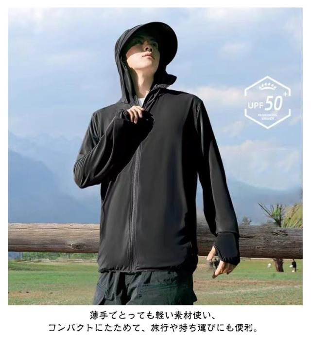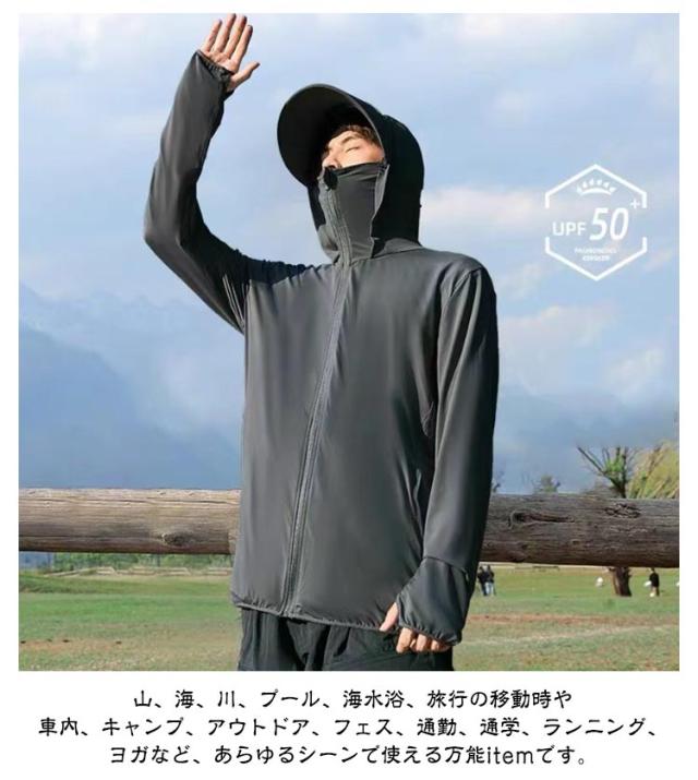 | つば付きフード、指穴袖、フェイスまで覆えるガードでしっかりUV対策!お肌に有害な紫外線カット!シンプルなデザインで 春、夏、秋でもお気軽に利用できるラッシュガード。接触冷感生地でひんやり気持ちがよく切られるパーカーです。 指穴付きなので手も覆ってくれます。 速乾性もあるから、ベタベタせず、着心地も最高。 薄手でとっても軽い素材使い、コンパクトにたためて、旅行や持ち運びにも便利。 汗を吸収してすばやく発散、サラサラの肌触りが持続できます。 縦横に伸びるストレッチ生地を採用。 山、海、川、プール、海水浴、旅行の移動時や 車内、キャンプ、アウトドア、フェス、通勤、通学、ランニング、ヨガなど、あらゆるシーンで使える万能itemです。 | |