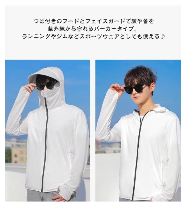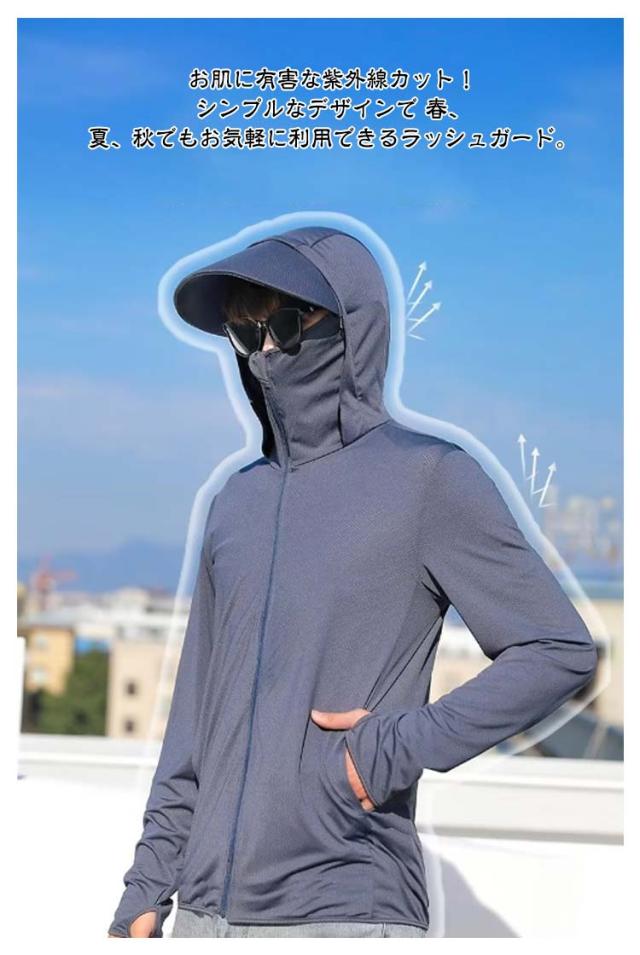 UVパーカー メンズ UVカット パーカー 接触冷感 UPF50+ ラッシュガード 夏用 冷感 ひんやり 涼しい 紫外線対策 冷房対策 ライトアウター 男女兼用 涼しい 日焼け止め服 薄手 軽量 通気性 大きいサイズ カジュアル 夏 送料無料 つば付 サンバイザー 取り外し不可