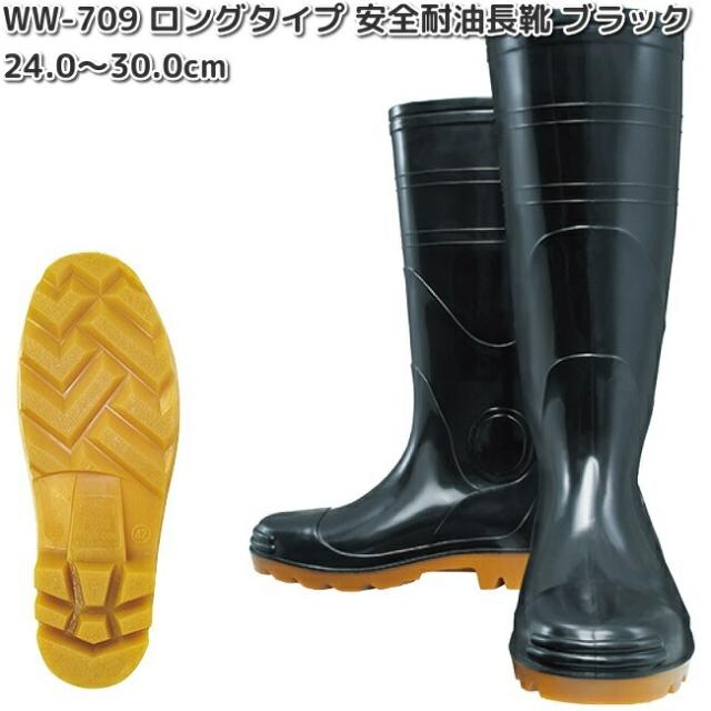 WW-709 ロングタイプ 安全耐油長靴 ブラック 24.0〜30.0cm WW709 お取り寄せ商品 おたふく手袋 男女兼用 厨房 長靴
