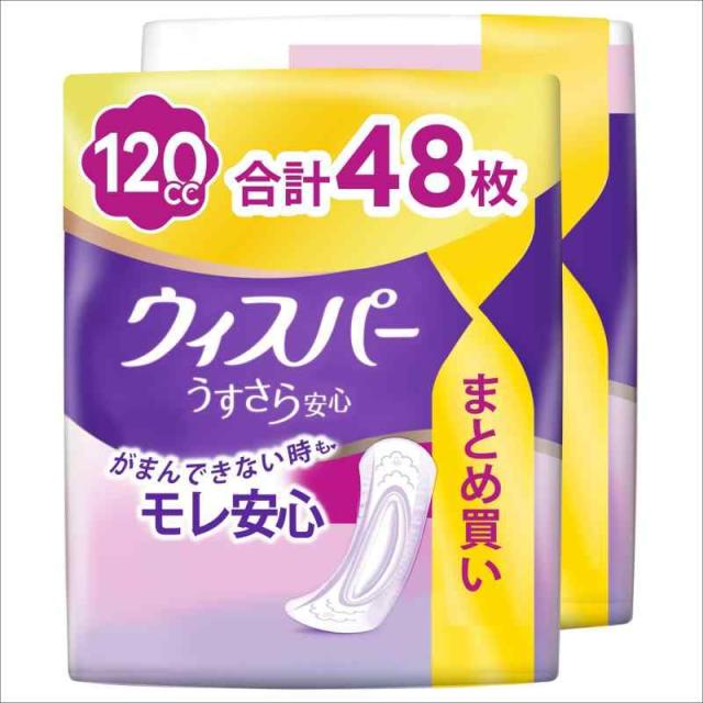 ウィスパー うすさら安心 120cc 48枚 (24枚×2パック) (尿漏れパッド 尿とりパッド 女性用)【中量用】[まとめ買い・大容量]