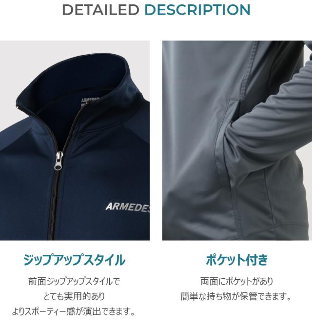 送料無料 ARMEDES アルメデス アウター ジャージ ジャケット 機能性 通気性 スーパードライ ストレッチ 軽量 ジップアップ ポケット 日常 カジュアル トレーニングウェア メンズ M-2XL 全4色 オールシーズン AR94