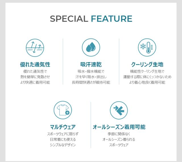 吸汗速乾機能を備え、汗をかいてもすぐに乾き、快適さをキープ。