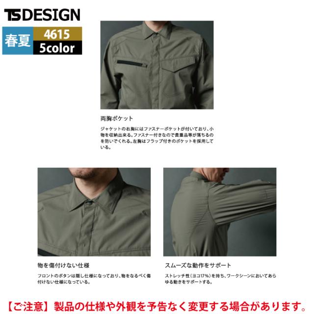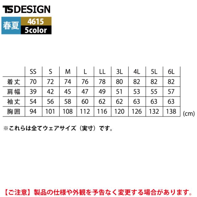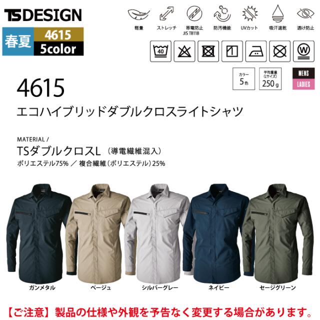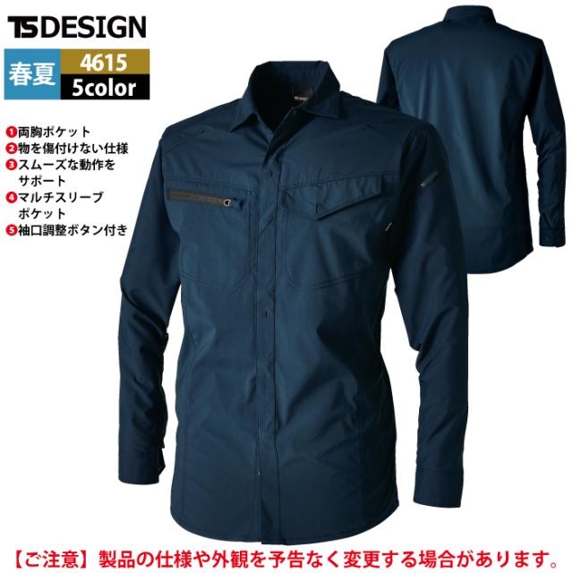 藤和 TSDESIGN 作業服 オールシーズン 4615 ダブルクロスライトシャツ 3L-4L