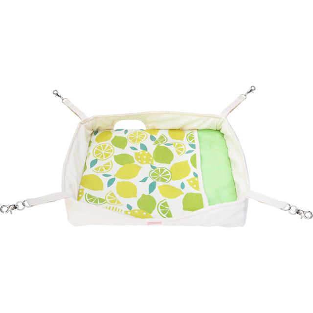 | 商品説明 | コットン生地のオールシーズン使えるスタンダードサイズのハンモックです。 かわいくてフレッシュなレモンのプリント! オールシーズン使えてフェレットちゃんがリラックスできる形です。 丈夫なツイル生地なので長くお使いいただけます。 こんな方におすすめです。 ・フェレットのオールシーズン用ハンモックをお探しの方。 ・もぐれるハンモックをお探しの方。 |