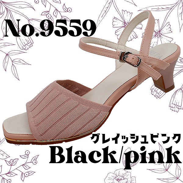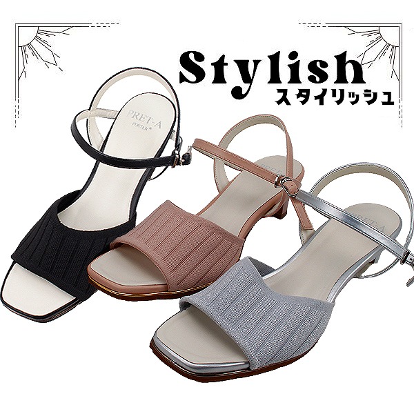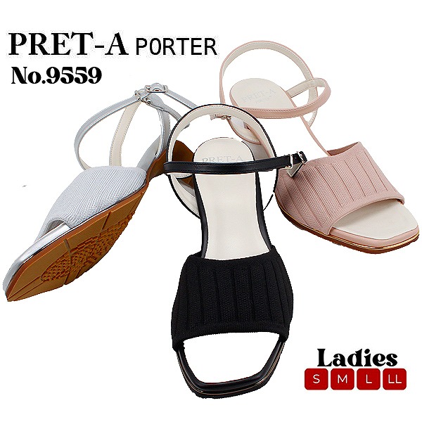 サンダル レディース ローヒール ブラック シルバー グレイッシュピンク ストラップ オープントゥ プレタポルテ PRET-A PORTER 9559 夏 安定感 おしゃれ