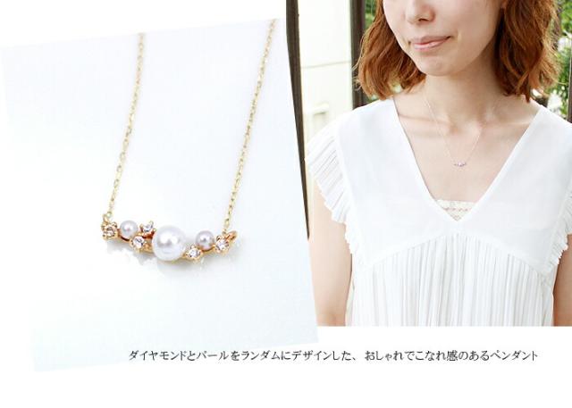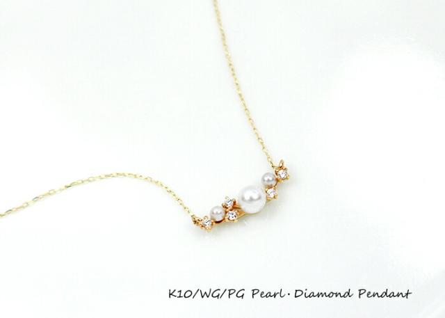 ペンダント ネックレス ダイヤモンド あこや 本真珠 パール 0.04ct 4mm 2.5mm 10金 ホワイトゴールド ピンクゴールド K10 WG PG ライン レディース アクセサリー ジュエリー ギフト 52353 ダイヤ