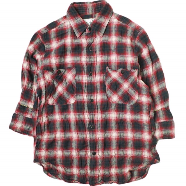 Niche. ニッチ 皴加工オンブレチェック七分袖シャツ S レッド トップス