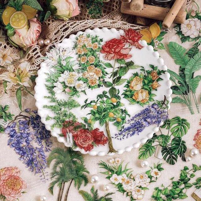 透明シール 大きめ 花 フラワー フレークシール 海外ステッカー コラージュ 素材 海外シール クリア PET 耐水 ジャンクジャーナル デコシール デコレーション 藤の花 紫色の花 ローズ 薔薇 観葉植物 レモン グリーン 手帳 ファイル スマホ飾り ハンドメイド DIY