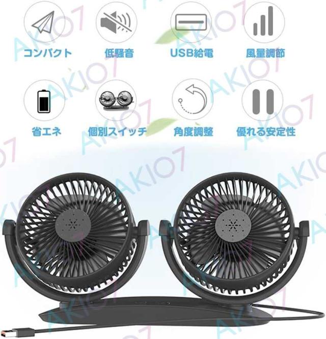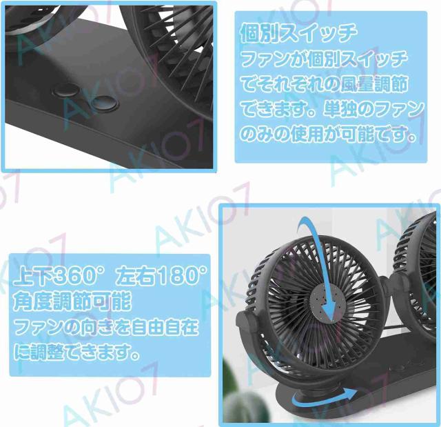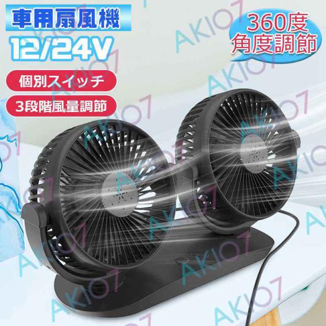 【12/24V】3枚羽根 車用扇風機 車載扇風機 個別スイッチ usb 扇風機 車載ファン 3段階風量調節 360度角度調節 ツーファン付き 汎用 夏対策 トランク対応 ダッシュボード用 車中泊 扇風機
