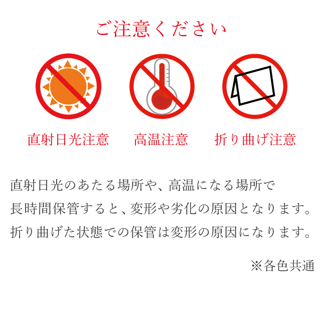 長時間保管すると変形や劣化の原因となります。