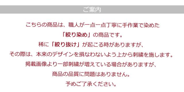 ※こちらの商品は、職人が一点一点丁寧に手作業で染めた「絞り染め」の商品です。