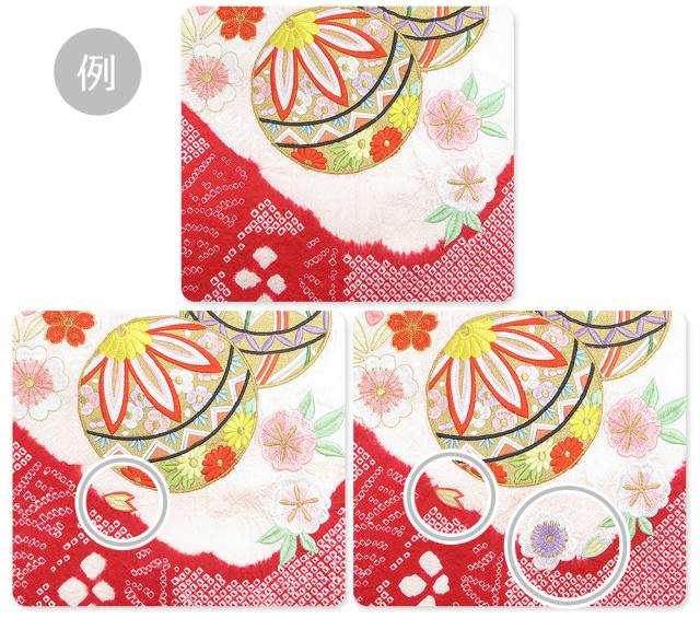 稀に「絞り抜け」が起こる時がありますが、その際は、本来のデザインを損なわないよう上から刺繍を施します。