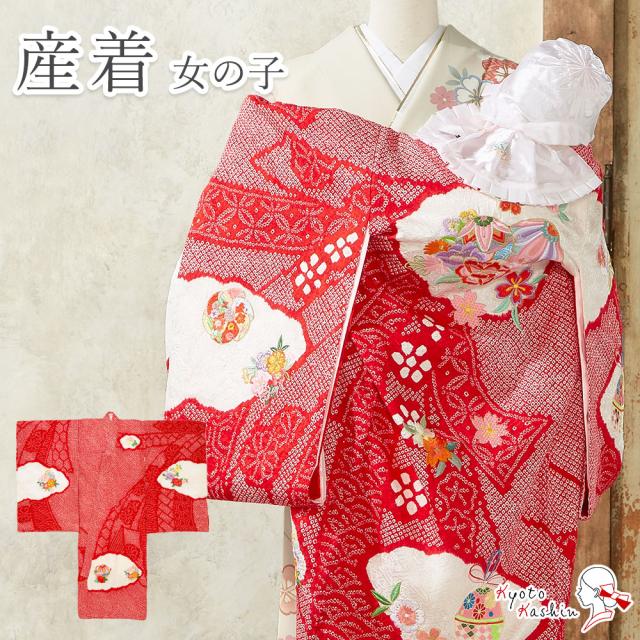 産着 お宮参り 女の子 正絹 初着 御宮参り 祝い着 着物 赤ちゃん 初宮参 女児 お祝い お宮参り用 記念撮影 購入 販売 赤 絞り 束ね熨斗 毬 桜 花柄 刺繍