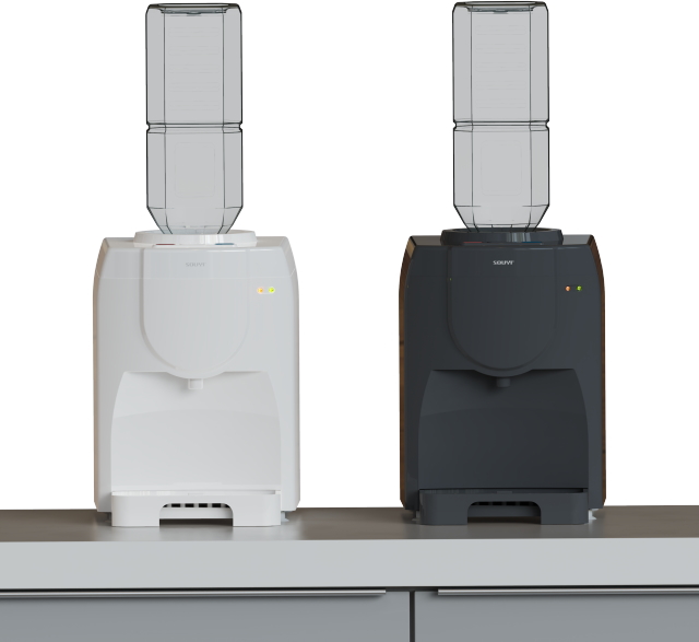 いつもの2Lペットボトルをセットするだけ。お湯と冷水がすぐに出る家庭用卓上ウォーターサーバー!冷水温度が最低約9℃と低く、ボタン1つでいつでも冷えた水をご使用いただけます。最大95℃のお湯で、お茶・コーヒー・カップ面などがに直ぐに調理できます。電気ケトルやヤカンを使用せずとも、使いたい時にお湯が使えて便利です。水受けトレーがスライド式で幅の調整ができるので、容器の大きさに関係なく容器を手で支えなくても給水ができます。大きめのマグカップやお鍋でも手軽に置いて給水できるのでお料理にも使いやすくなっています。