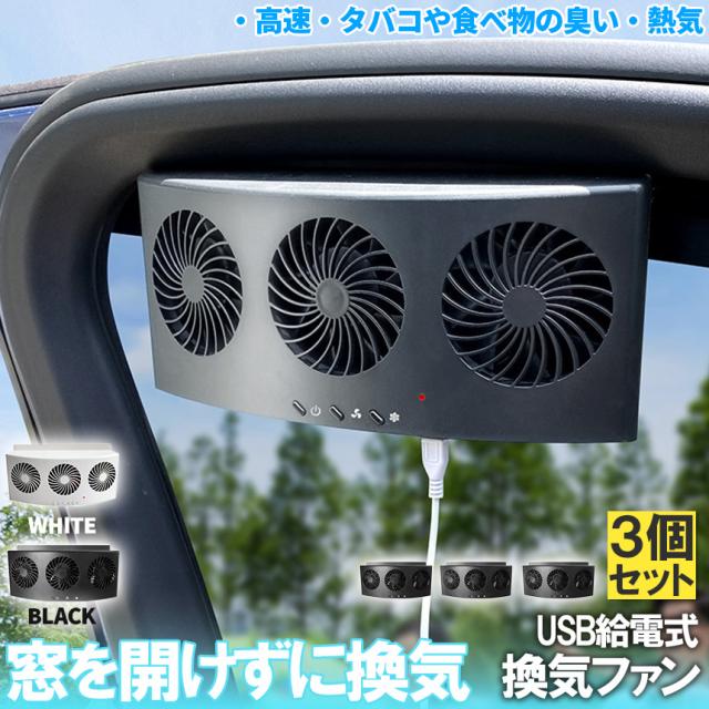 車載換気ファン 3個セット USBタイプ 2色 車用排気ファン 車載 ファン 車用排気 換気扇 車内換気 空気清浄機 消臭 熱気排出 車用冷房品 省エネ 車載 空調 暑さ対策 カー用品 取り付け簡単 臭い 熱気 高速 雨天 飲食 タバコ