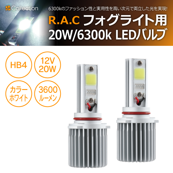【在庫限】R.A.C 12V車用 LEDバルブ HB4 3600ルーメン 6300ケルビン 20W 2個入り (商品コード:WP0064)