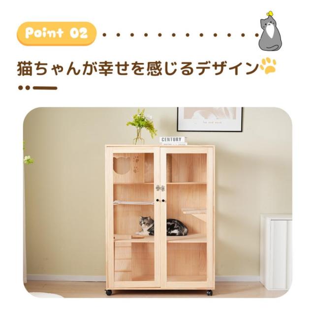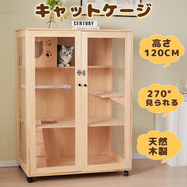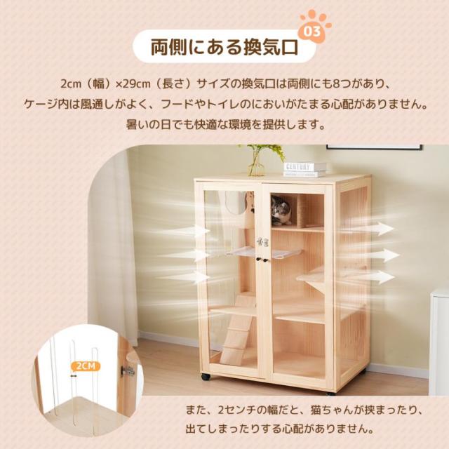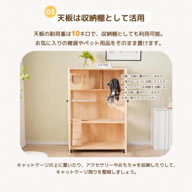 3段式 猫 ケージ キャットケージ ケージ 木製 猫 ワイド 多頭飼い ペットケージ 猫ゲージ ペットハウス キャットハウス 大型 隠れ家付き 270°見える キャスター付き 多段 留守番 保護 脱走防止 幅広い 据え置き ペット用品 猫用品 おしゃれ