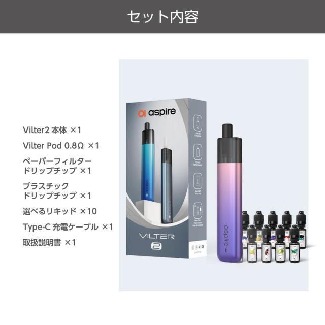 電子タバコ 本体 VAPE ベイプ スターターキット Aspire VILTER 2 アスパイア 電子タバコ タール ニコチン0 水蒸気 電子タバコ リキッド 持ち運び シーシャ おすすめ アスパイヤ ヴィルター 2 禁煙 電子煙草 おすすめ ランキング ニコチンゼロ