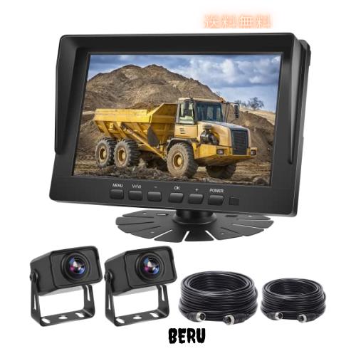 Hizenyo トラックカメラ2台搭載 バックカメラモニターセット 8インチバックモニター 24vバックカメラ 分割表示 ガイドライン 正像・鏡像