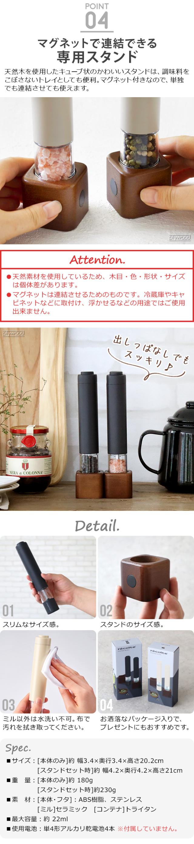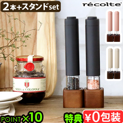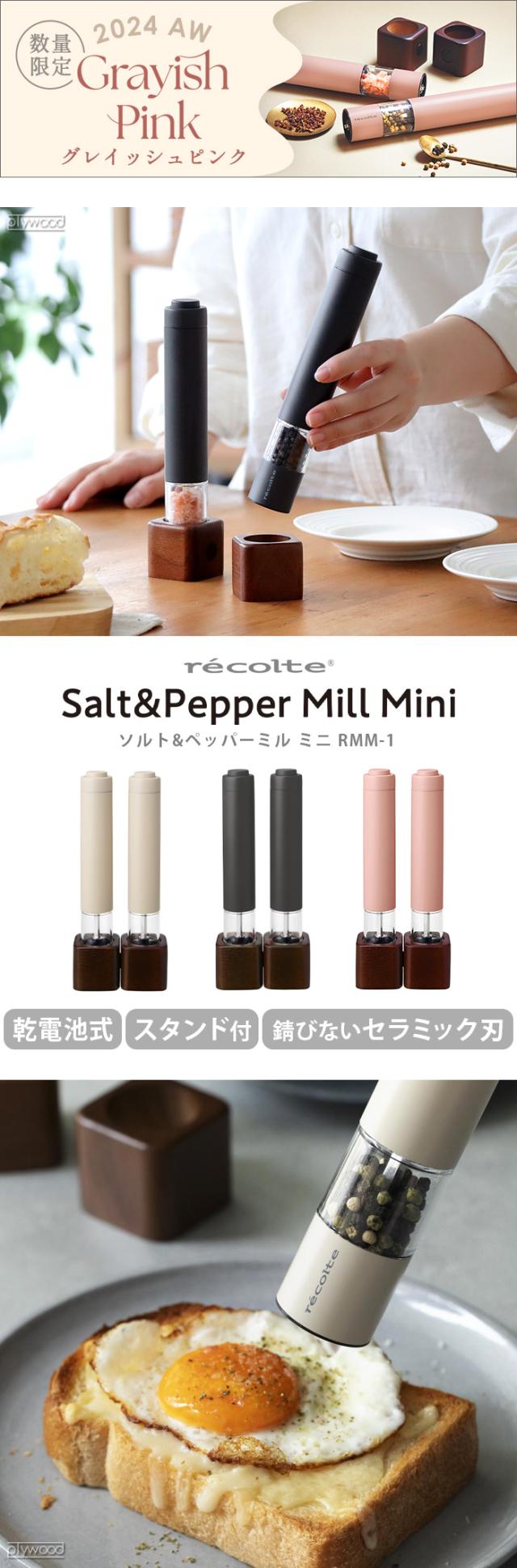 【選べる特典付】 ソルト ペッパーミル セット 電動 電動ミル スパイスミル レコルト 電動ソルト&ペッパーミル ミニ recolte Salt & Pepper Mill Mini RMM-1 ワンプッシュ 片手 木製スタンド 挽き目調整可能 おしゃれ 2本入り キッチングッズ【送料無料★P10倍】