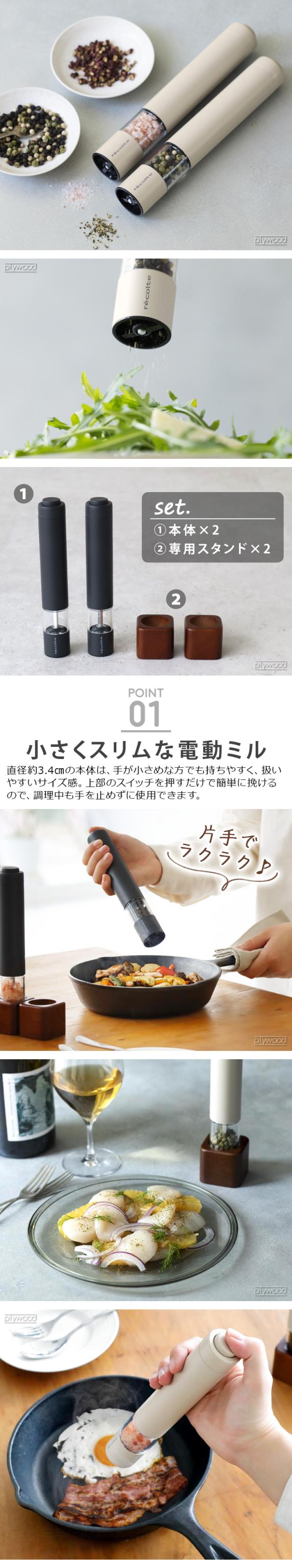 レコルトより、ワンタッチでかんたんに操作できる、ミニサイズのソルト&ペッパー電動ミルの登場です。