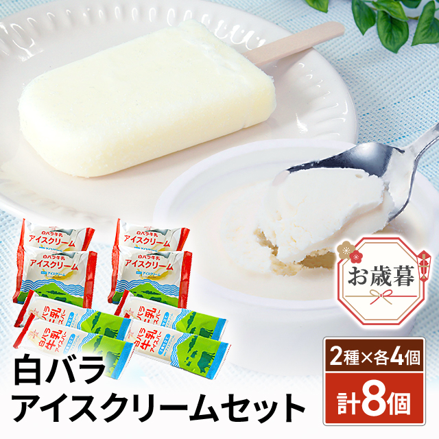お歳暮 白バラアイスクリームセット 計8個/2種×各4個 WR8 歳暮 スイーツ アイス ギフト 贈答 詰合せ 熨斗付き