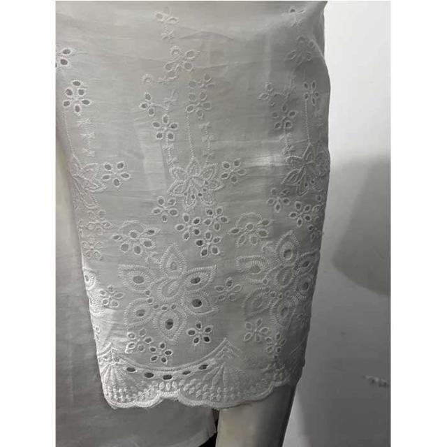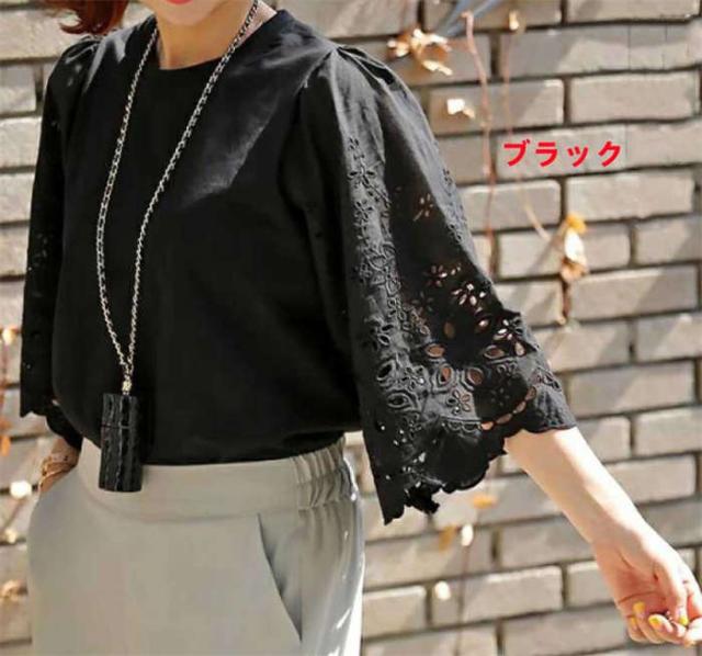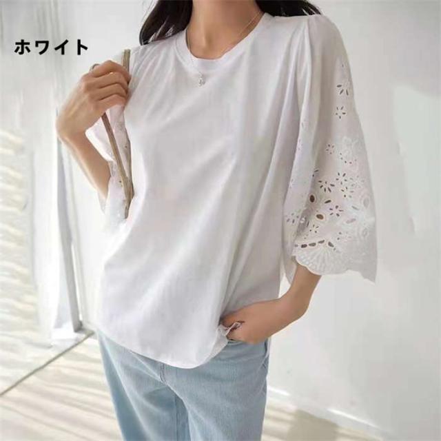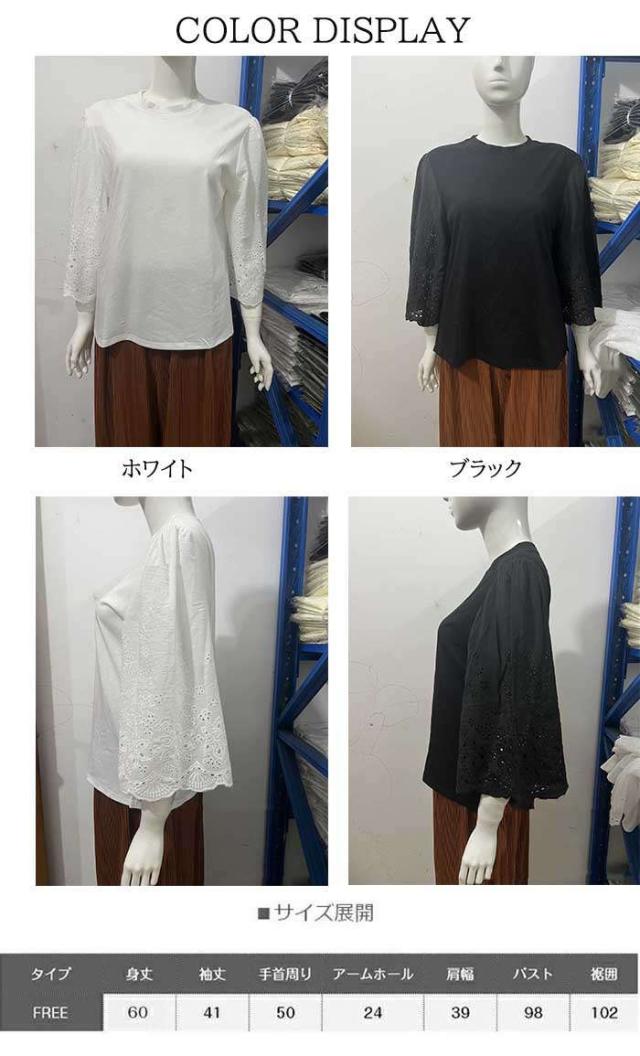 商品名:【短納期】シャツ レディース ブラウス 七分袖 ワイドシャツ 夏 トップス 体型カバー Uネック オーバーサイズ 大きいサイズ レース スカラップレース パンチングレース ゆったり カジュアル おしゃれ シンプル 柔らかい ファッション 通勤 OL オフィス お出かけ 母の日 プレゼント 送料無料