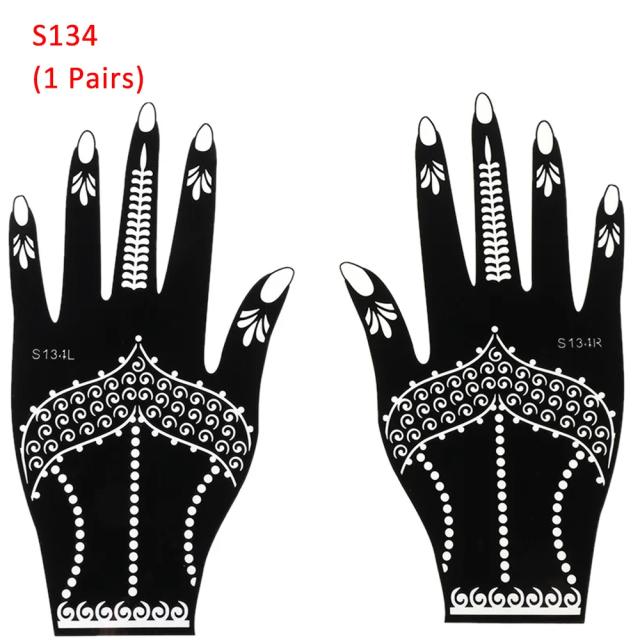 右手と左手の手の甲にフェイクタトゥーを簡単に描けるヘナタトゥー用のステンシルシートステッカーです。