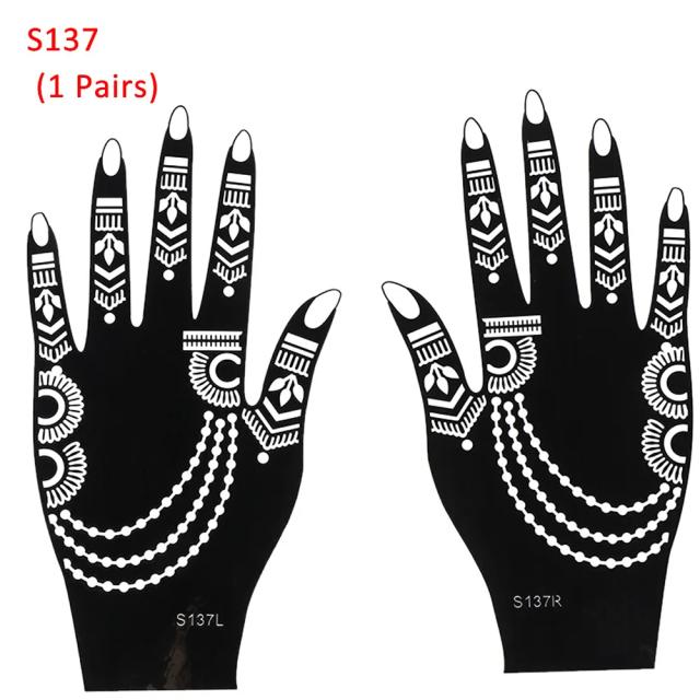 右手と左手の手の甲にフェイクタトゥーを簡単に描けるヘナタトゥー用のステンシルシートステッカーです。