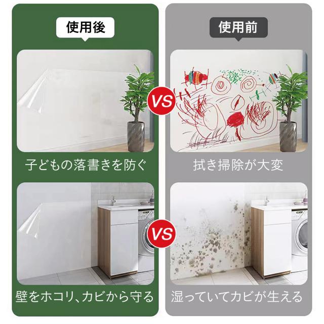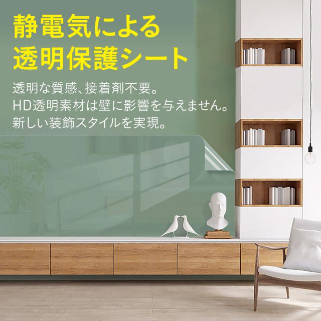 跡残らない 透明 壁紙 保護シート 90cm×5m 静電強吸着 賃貸にお勧め 落書き ペット ひっかき 防止 爪とぎ防止シート洗面台 水撥ね 足跡 防止 接着剤不使用 はがせる壁紙 キッチンシート 防水&防油&防汚 wall-seal-90