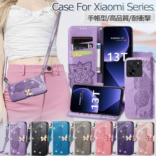 Redmi 12 5G ケース Redmi 12 5G xig03 Xiaomi 13T ケース 手帳型 Xiaomi 13T カバー Xiaomi 13T Pro ケース ショルダー 斜め掛け Xiaomi 13T Pro カバー Xiaomi 13T XIG04 au ケース 耐衝撃 おしゃれ 韓国 オシャレ 手帳ケース 蝶柄 型押し キラキラ かわいい