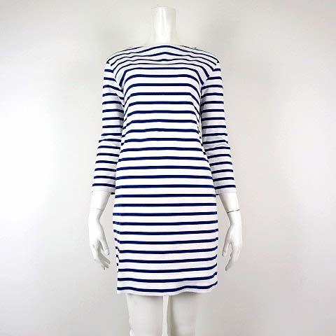 【中古】プラステ PLST シャツ バスクシャツ チュニック ワンピース 7分袖 ボーダー L 白 ホワイト 青 ブルー
