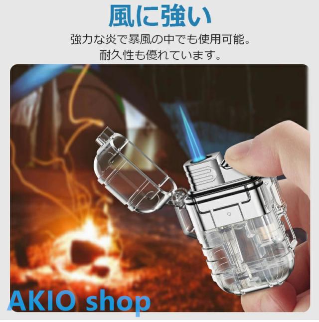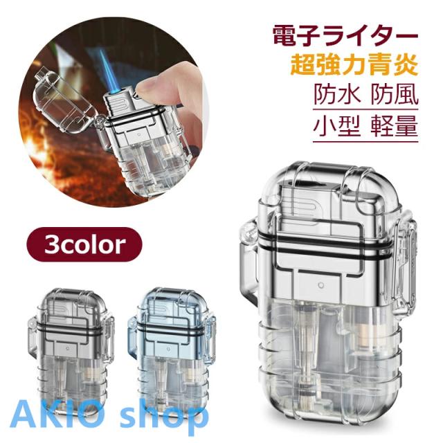 電子ライター 小型 軽量 超強力青炎 3color 防水仕様 コンパクト ガス 充填式 透明 ガス残量確認可 防風 ライター 登山 キャンプ 防災 誕生日 記念日