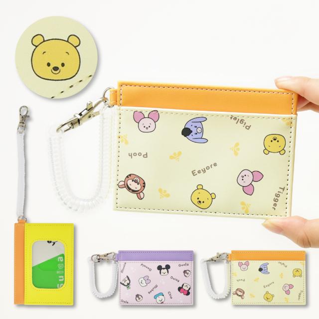 ディズニー パスケース 定期入れ 合皮 コイルチェーン付き 2枚収納 ミッキーフレンズ くまのプーさん カードケース シンプル レディース メンズ 女子 男子 男女兼用 通勤 通学 旅行 大人 大学生 高校生 中学生 小学生 学生 子供 かわいい 可愛い キャラクター グッズ