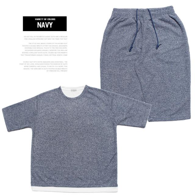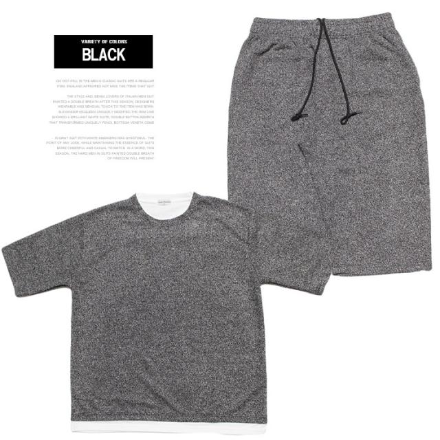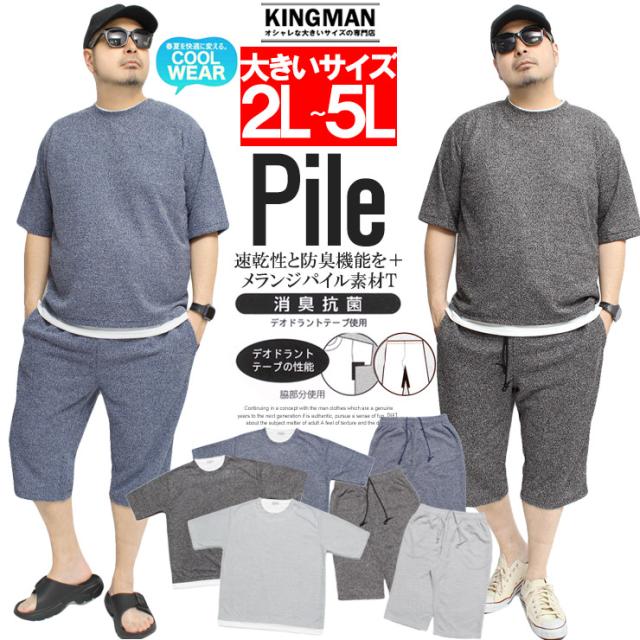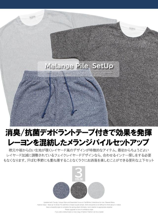 送料無料 セットアップ メンズ 大きいサイズ メランジ パイル 消臭 抗菌 薄手 フェイクレイヤード 5分袖 Tシャツ ショートパンツ セットアップ メンズ 大きいサイズ メランジ パイル 消臭 抗菌 薄手 フェイクレイヤード 5分袖 Tシャツ ショートパンツ ワークマン プラス